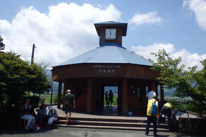 日本一長い駅名として有名になった「南阿蘇水の生まれる里白水高原駅」で休憩しました。熊本地震により、現在運行しているのは高森駅⇔中松駅間で、当駅から立野駅までは不通となっています。「電車の通っていない線路はもの悲しいね。」と誰からともなく声が聞かれました。