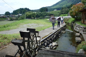 参加者の希望で、震災により枯渇した「塩井社水源」へ。水の神様の岡象女神が奉られている神社の境内にあり、エメラルド色をした神秘的な雰囲気のある水源でした。村内で唯一西から東に流れる川で、下流にはオルゴールのメロディが流れる水車があり人々を魅了していました。