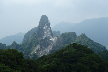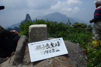 東峰山頂から見る天狗のコル(熊本地震により一部崩落している)
