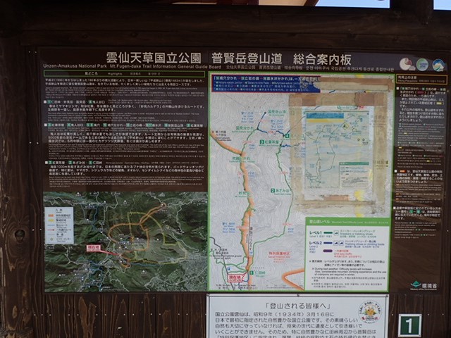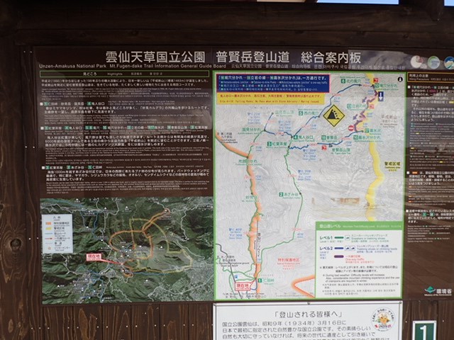 ▲仁田峠ロープウェイ切符販売窓口前の登山道情報。