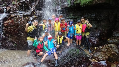 カヌーに乗って、川を歩いて(泳いで?!)、上流部にある滝を目指して進みます。