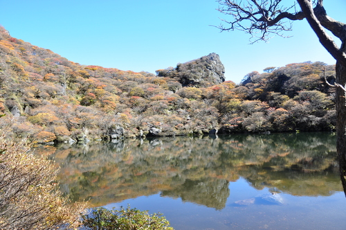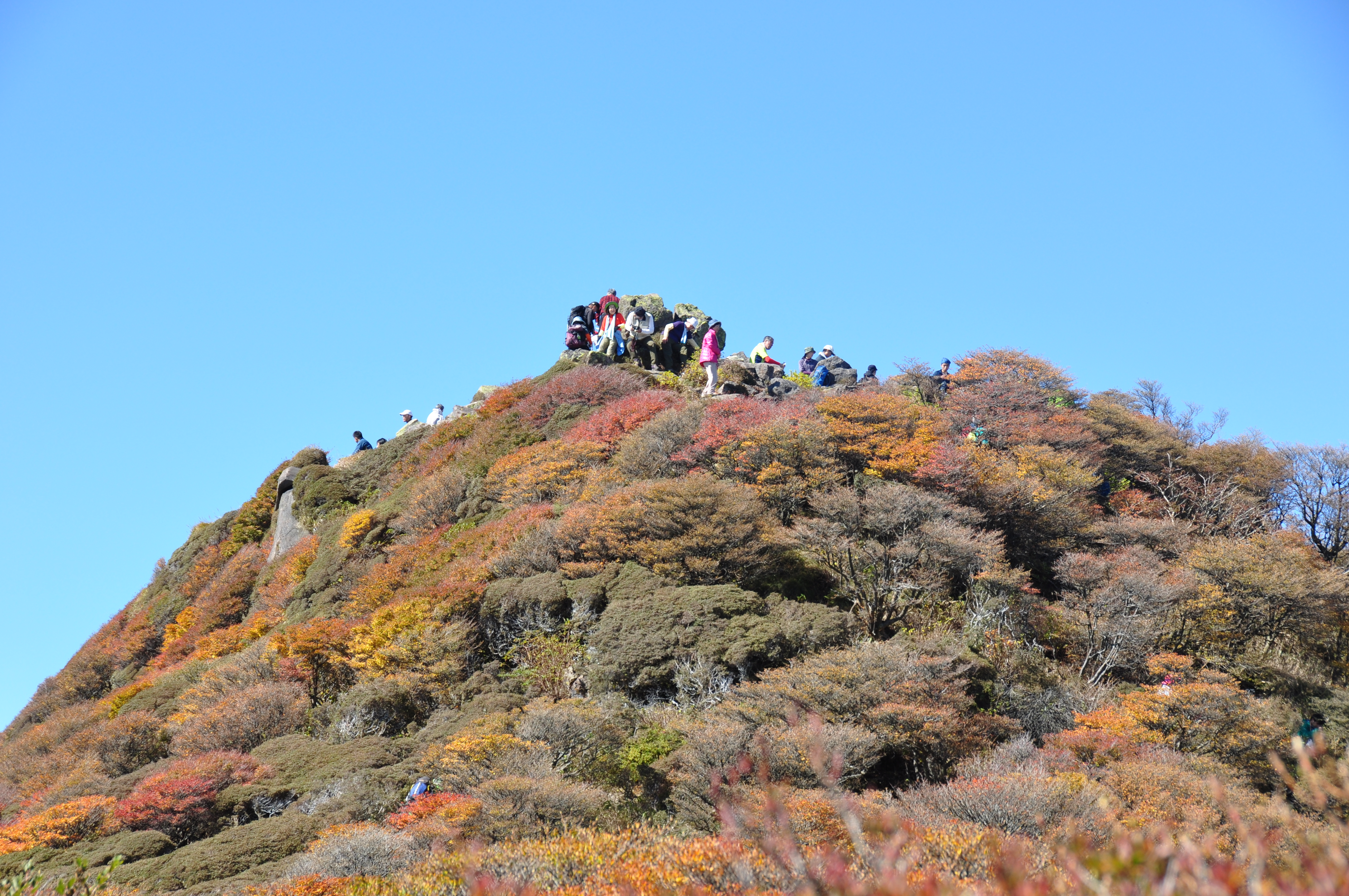 現在、大船山山頂の御池ではピークは過ぎてきています。また、今年は赤というより黄色みがかった紅葉が多いです。山頂付近はピークは過ぎましたが、山頂からの見下ろす景色はまだまだ楽しめます。