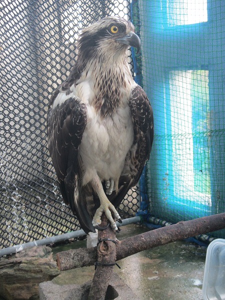 ・・・と、カンムリワシの飼育で四苦八苦していた10月21日にカンムリワシではない鳥が水田にいて飛べないとの連絡が入りミサゴを1羽救護しました。