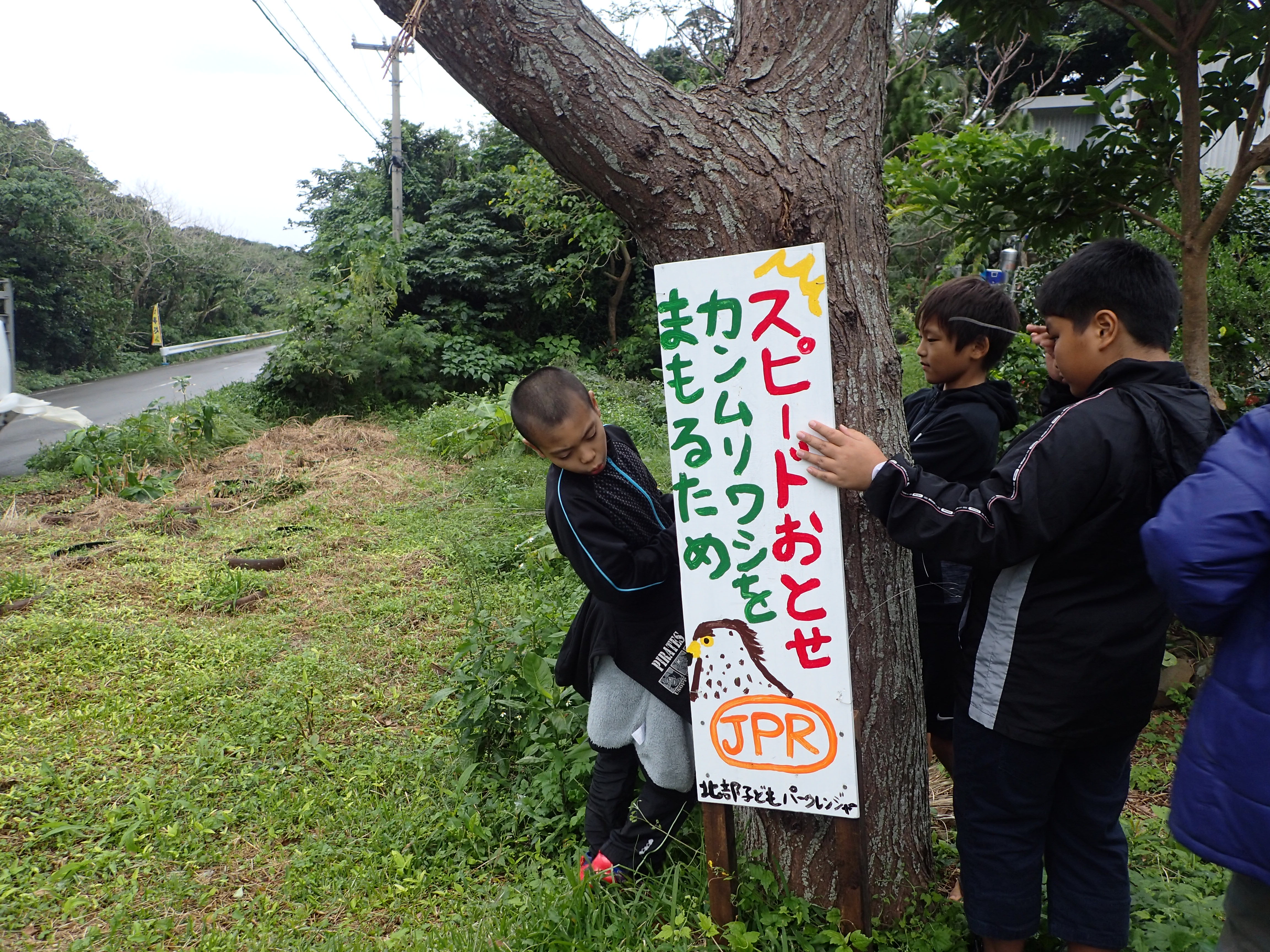 カンムリワシの交通事故防止のための看板づくりを行いました。