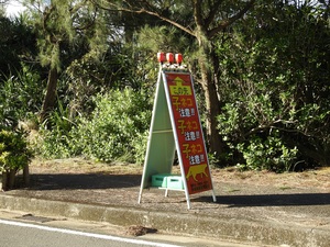 西表野生生物保護センターでは、ヤマネコの目撃情報が多発している場所へ移動式看板を立てて注意喚起を行っています。
