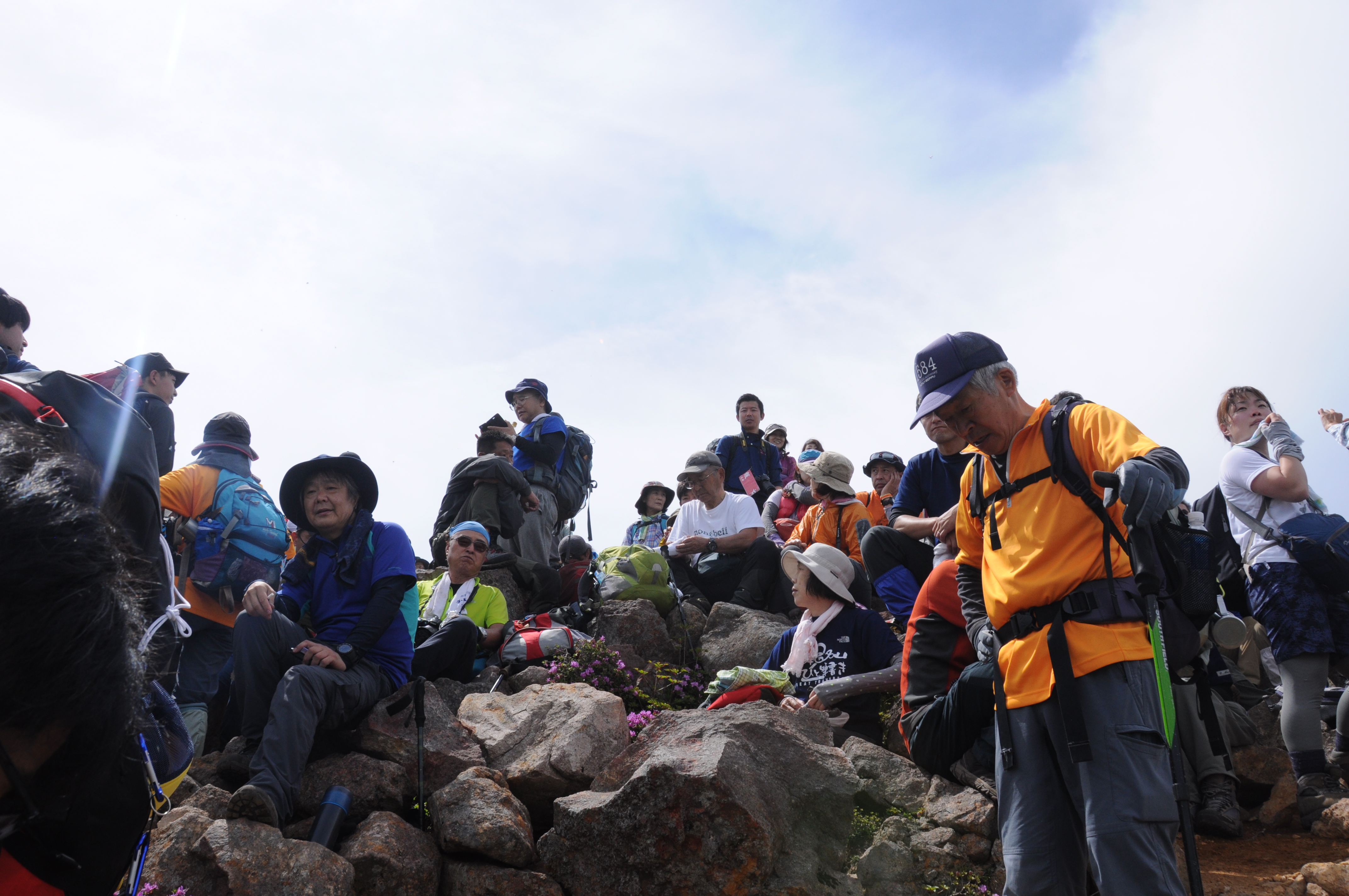 登山口から山頂への道は標高差のあるルートですが、遠方では関東方面からの方もおり、山頂周辺は多くの登山者で賑わっていました。