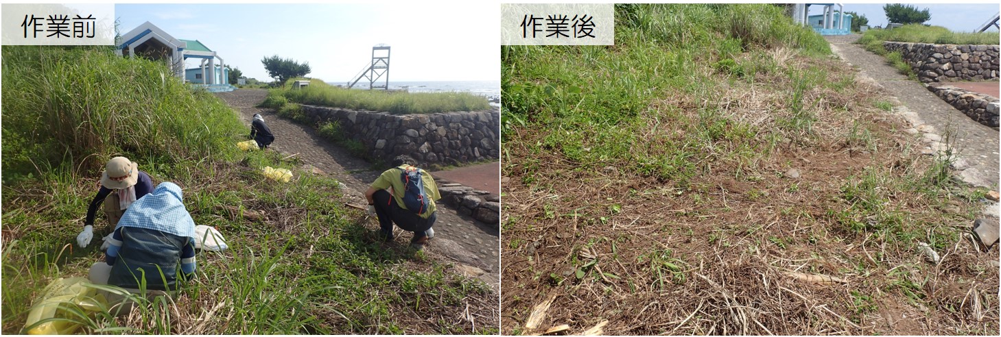 在来の植物はアメリカハマグルマの繁茂を抑制してくれるため、できるだけ残しながら作業をしました。