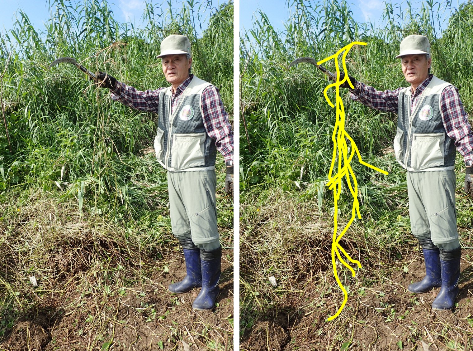 途切れないように抜くと、人の背丈以上の長さに伸び、節から次々と茎を出していました。