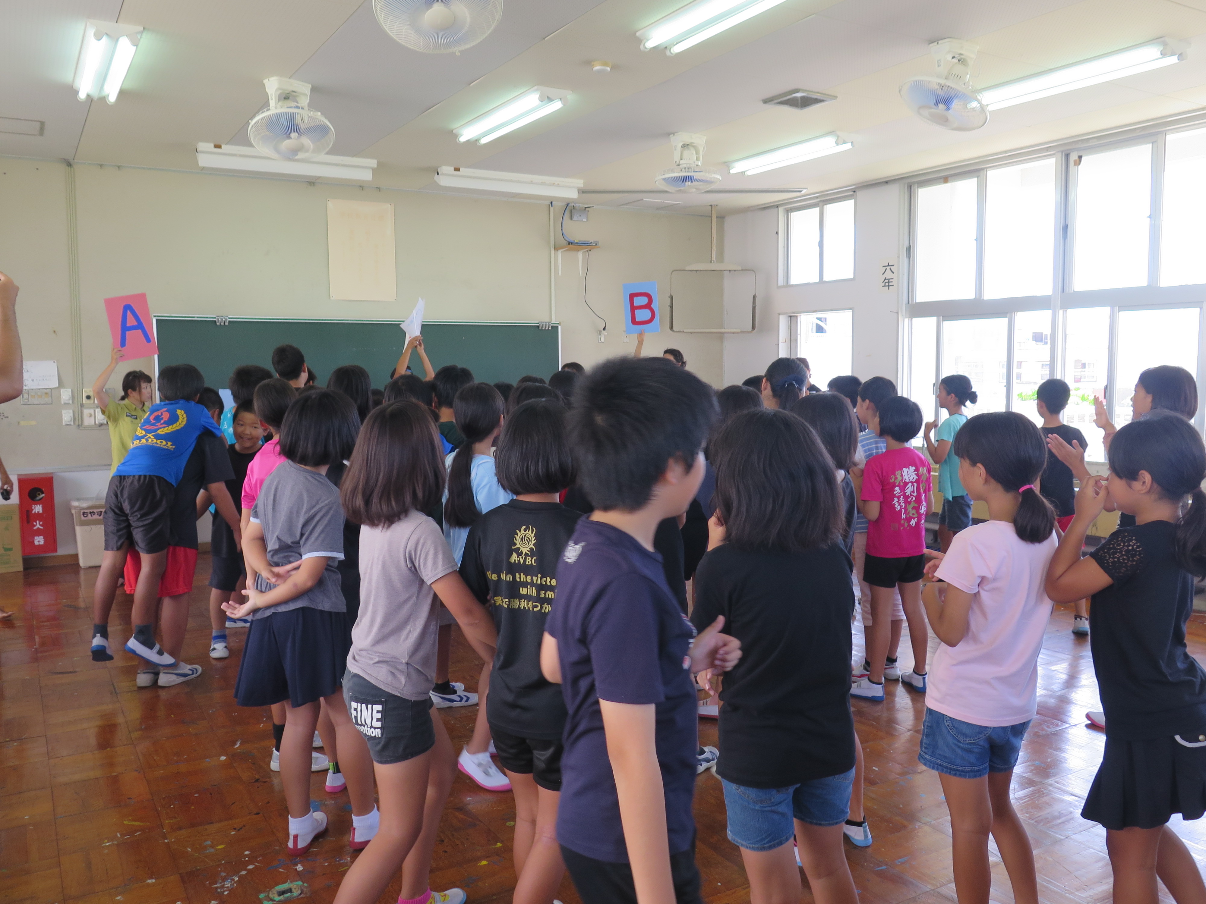 どーなるコーラル、サンゴ生き残りゲームに挑戦。(川平小学校)