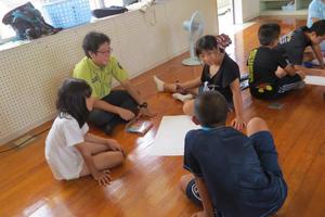 どんな発表にするか、グループごとに話し合い。(川平小学校)