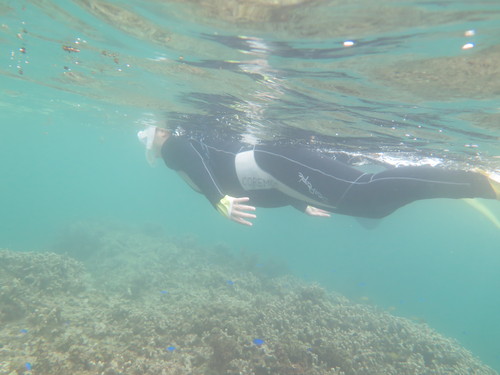 だんだん慣れてきたところで、サンゴのあるエリアへ泳いで行きます。