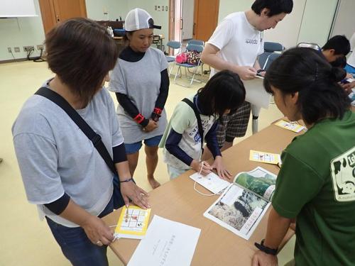 それぞれの班に分かれてアイスブレイクを行い、この日に見たい生き物のビンゴカード作りを行いました。