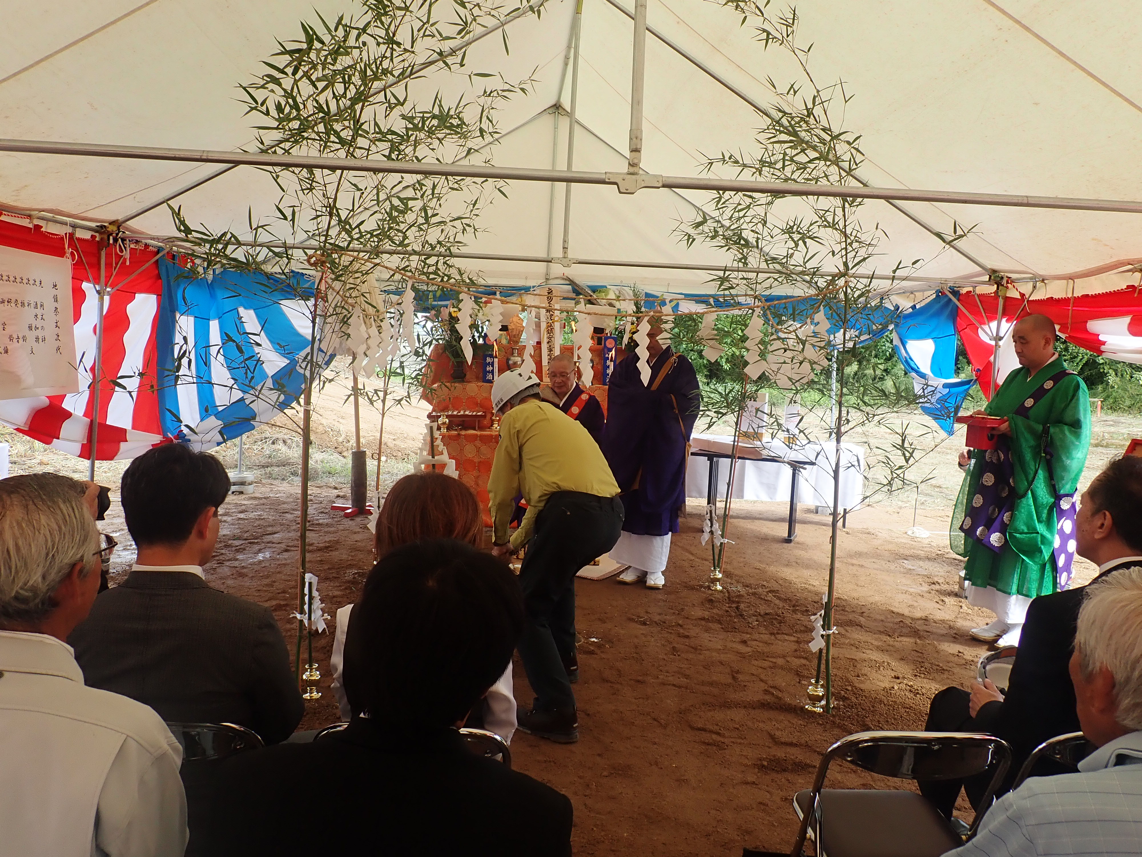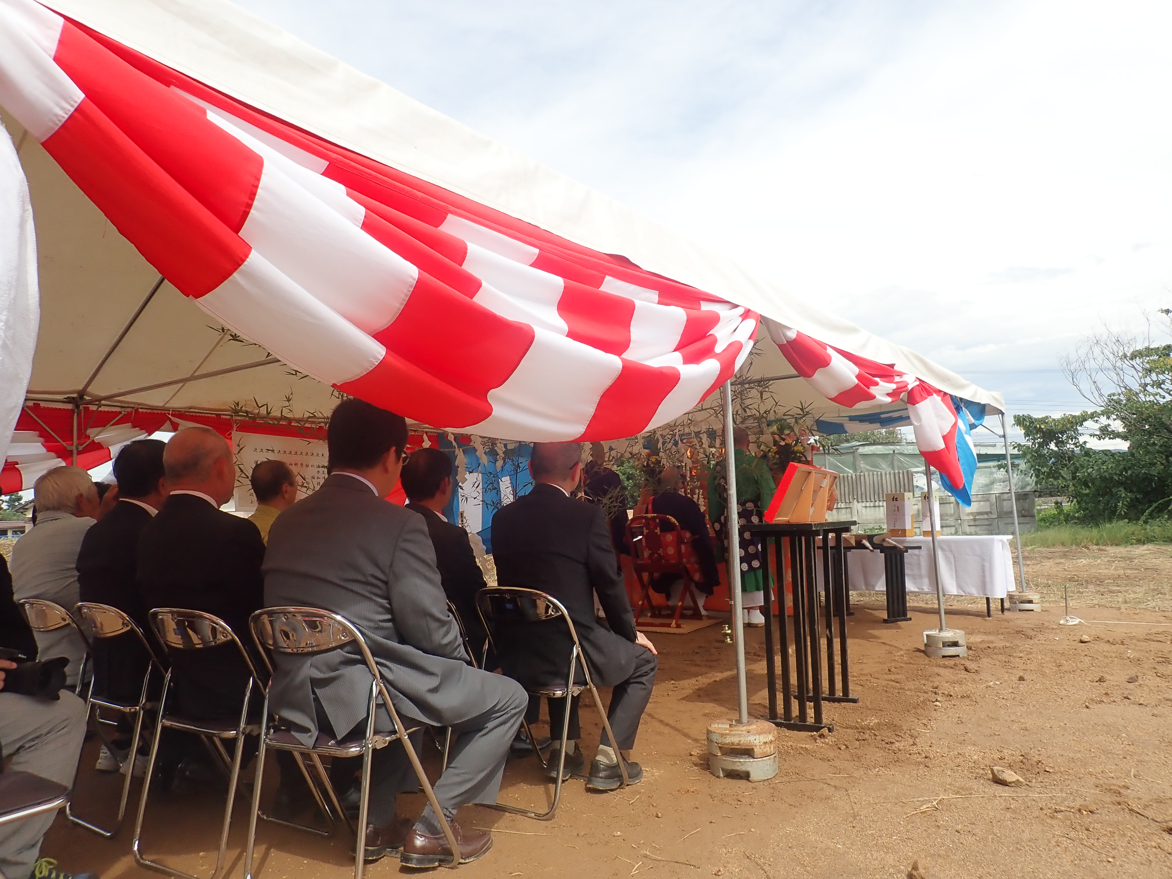 10月上旬には、建設予定地にて工事の無事を祈る安全祈願祭が行われ、荒尾市役所職員、地区代表者、活動団体、工事関係者の方々が祈願祭に出席しました。