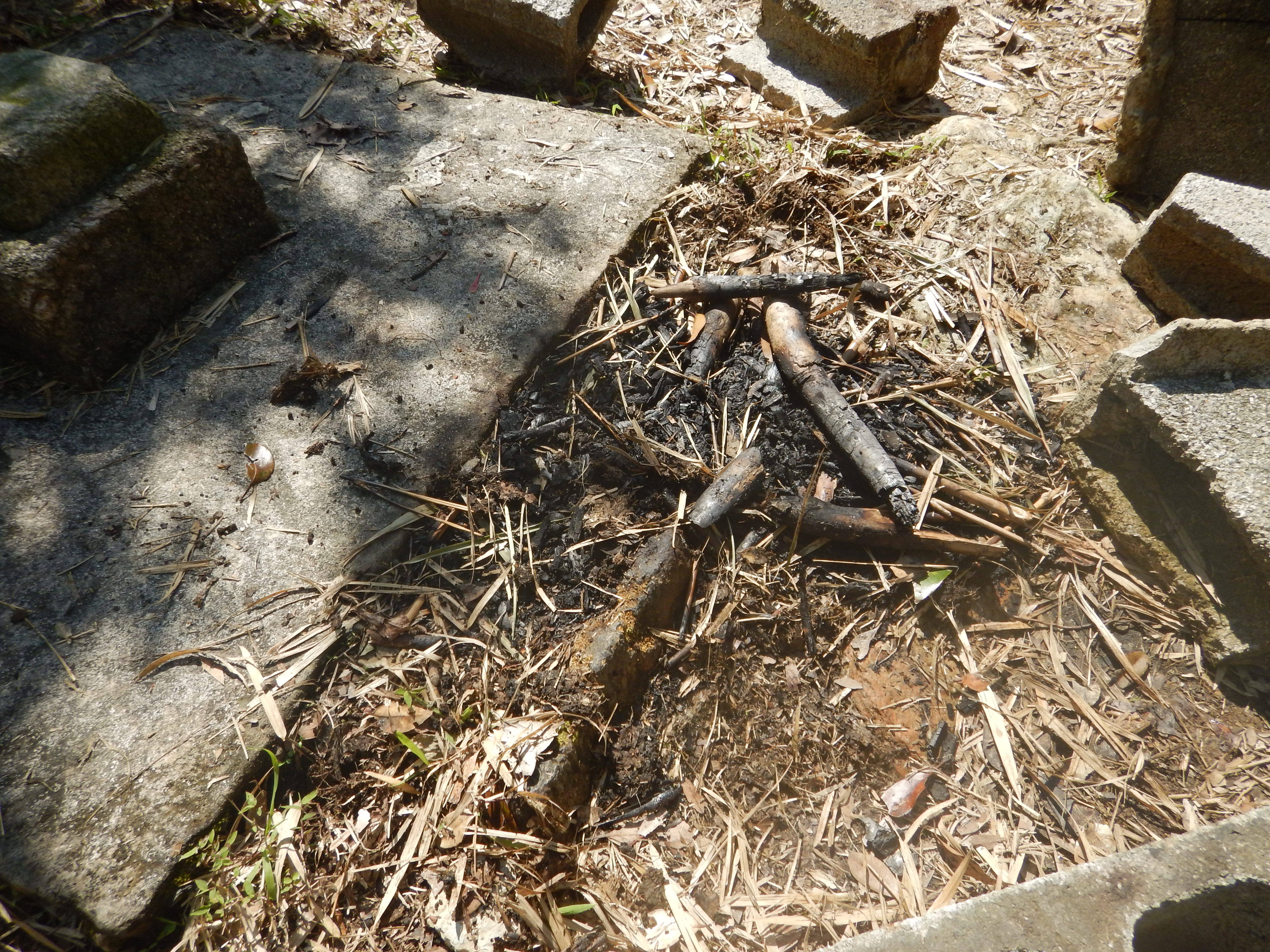 ここではたき火等も禁止なのですが、3月の巡視で頂上の三角点でたき火の跡が見つかりました。
