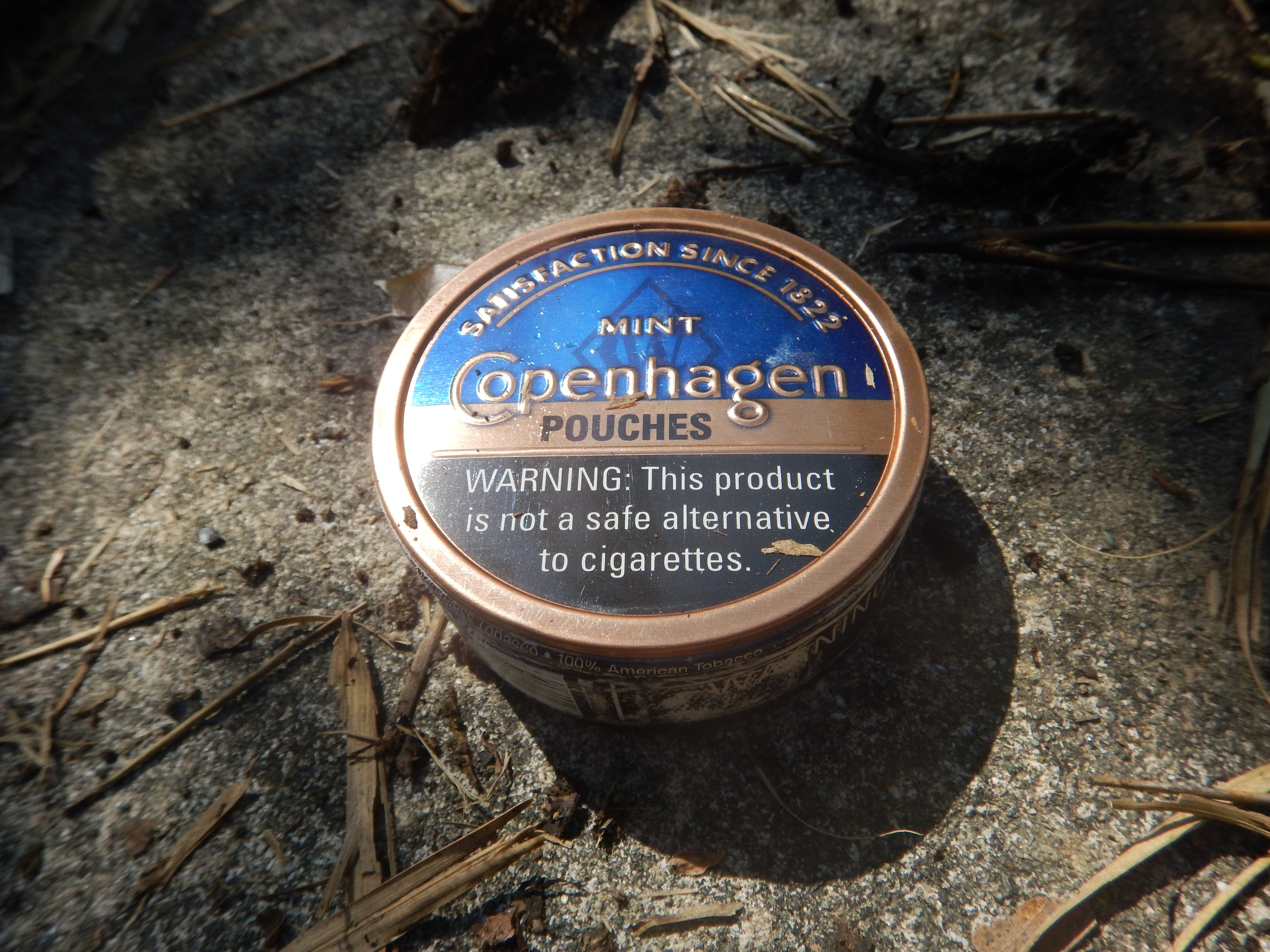 ▲与那覇岳三角点のたき火跡 ▲その側には手巻きたばこの空き缶がありました。