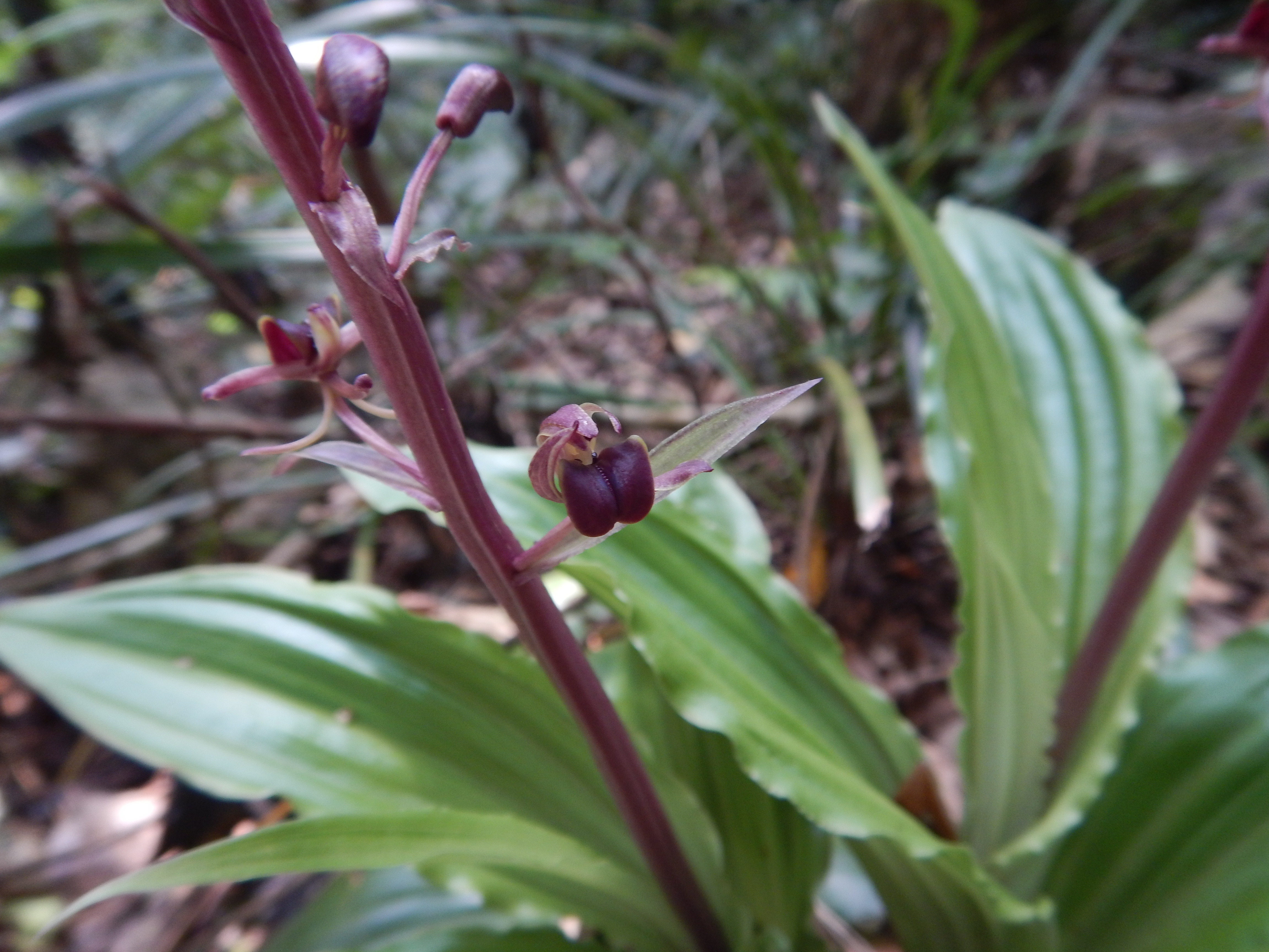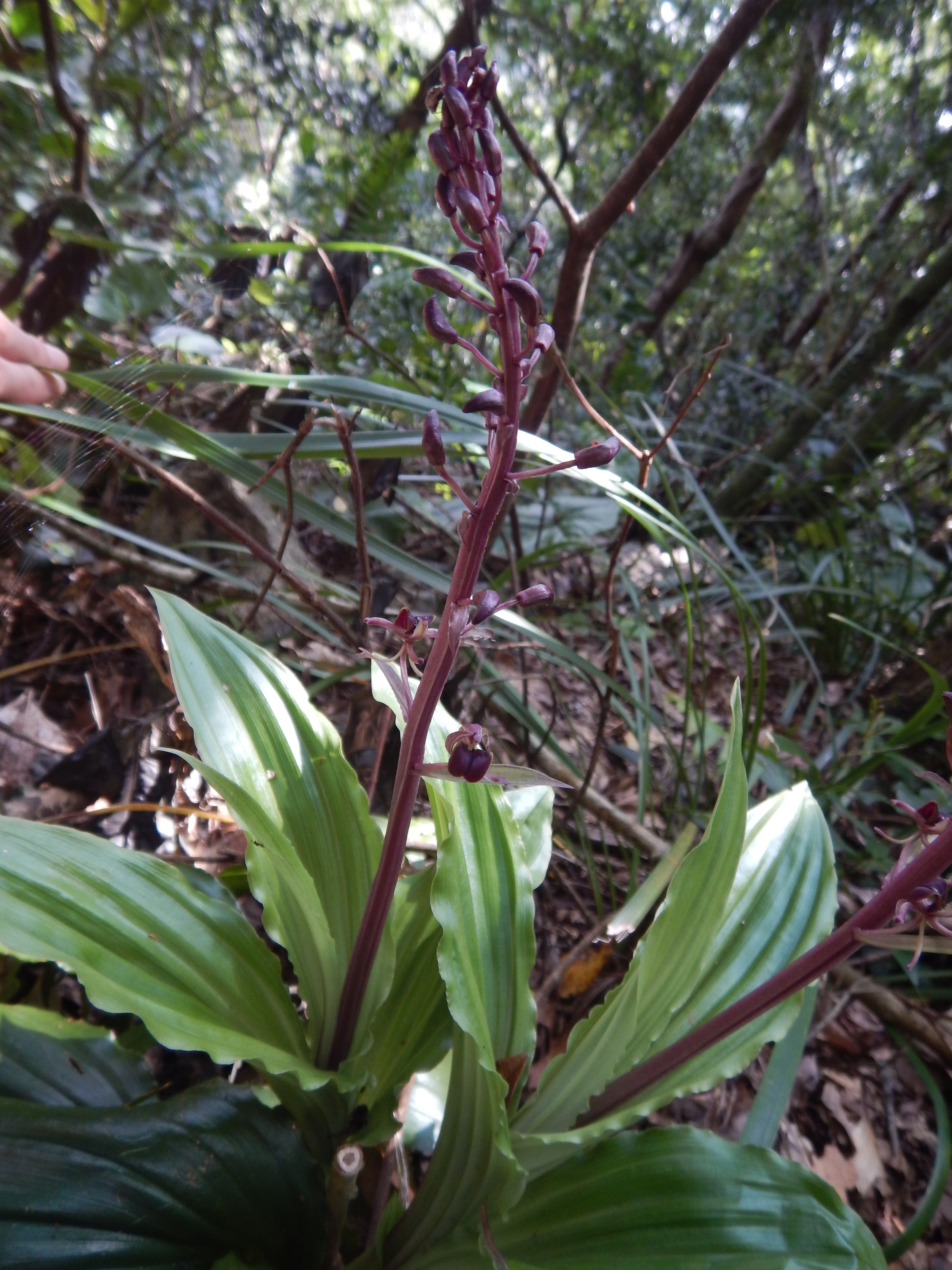 今年は当たり年なのか、林道の道沿いや森の林床をよく見てみると沢山の株から花茎が立ち上がっていました。