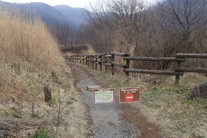 野焼き前日、タデ原湿原への通行規制をするため、通行禁止や迂回路の掲示を行いました。
