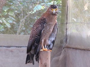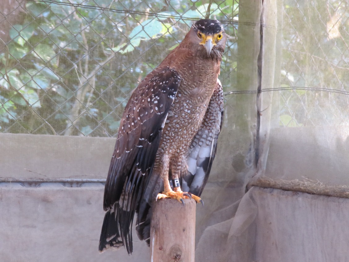 ▲右目を失明したカンムリワシのメス(足環装着:左脚に黒カラーでPと刻印)