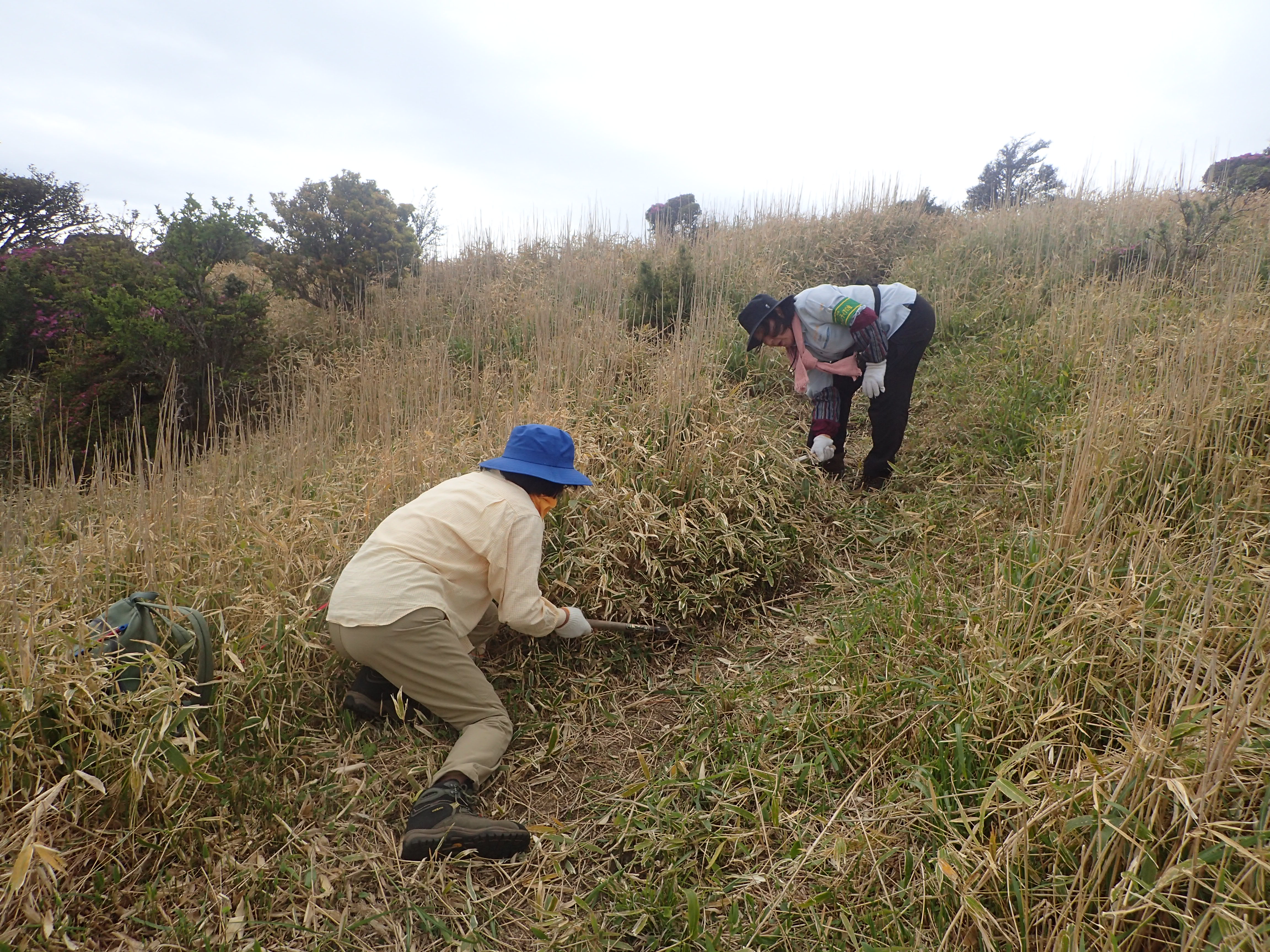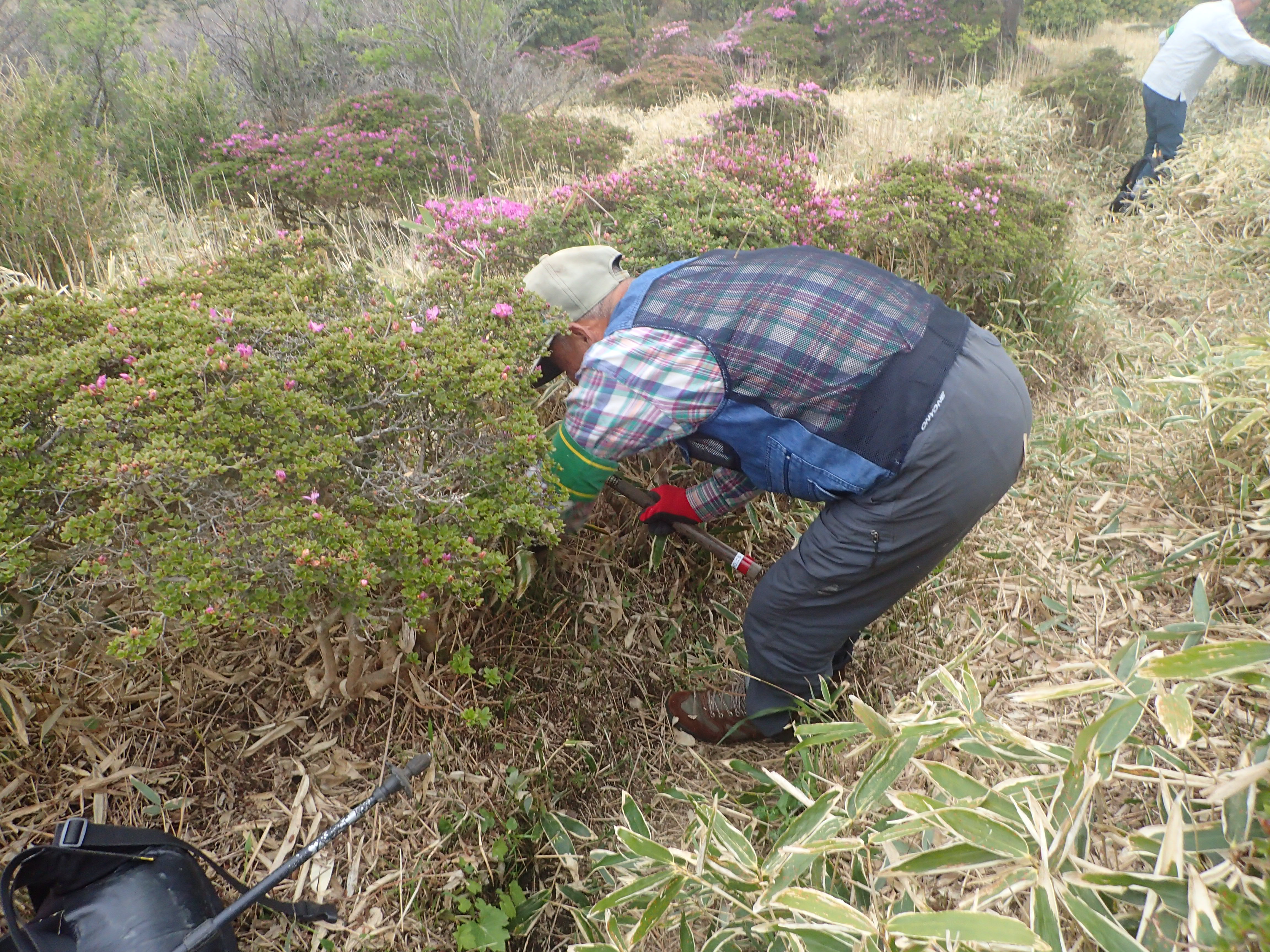ミヤマキリシマが見頃を迎え、多くの登山者が賑わうくじゅうですが、先日くじゅう地区パークボランティアの会で登山道沿いの草刈りを行いました。