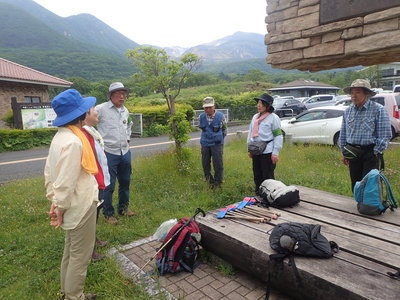 ▲下見を行った日は、登山口付近で27度を記録しており、活動当日も熱中症が心配されたのですが当日は曇り空