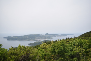鯛ノ鼻の展望所は昨年秋に改修工事が完了し、以前より前へ突き出た形となったため、平戸島北に位置する生月島全体が見えるようになりました。数日前に降った雨が幸いしたのか、この日はなんと生月島右後方に対馬まで見えていました!後日、みんなにこのことを話してもなかなか信じてもらえなかった程、平戸島から120km離れた対馬が見えるのは珍しいことだったようです。写真では小さすぎて写っていないのが残念です。