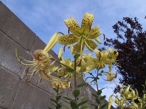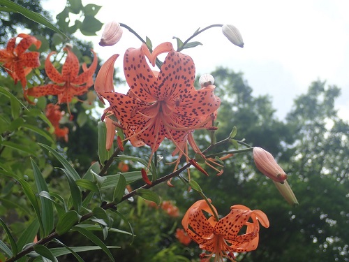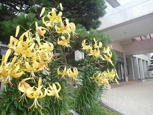 現在、野生のオウゴンオニユリを見ることは難しいですが、島内各地で栽培されており、オニユリと同じ今の時期に花を咲かせます。