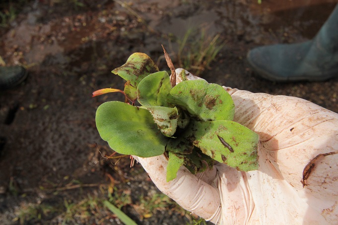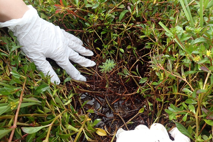 屋久島の冬に十分耐えられる性質をもっていることに加え、オオフサモに迫るほどの繁殖力の強さは脅威です。昨年に調査をした時にはルドヴィジアはほとんど見られませんでした。しかし今回はオオフサモよりルドヴィジアの方が多く、もしかするとオオフサモと競合し、場合によってはルドヴィジアが勝つのでは、とまで思ってしまいました。