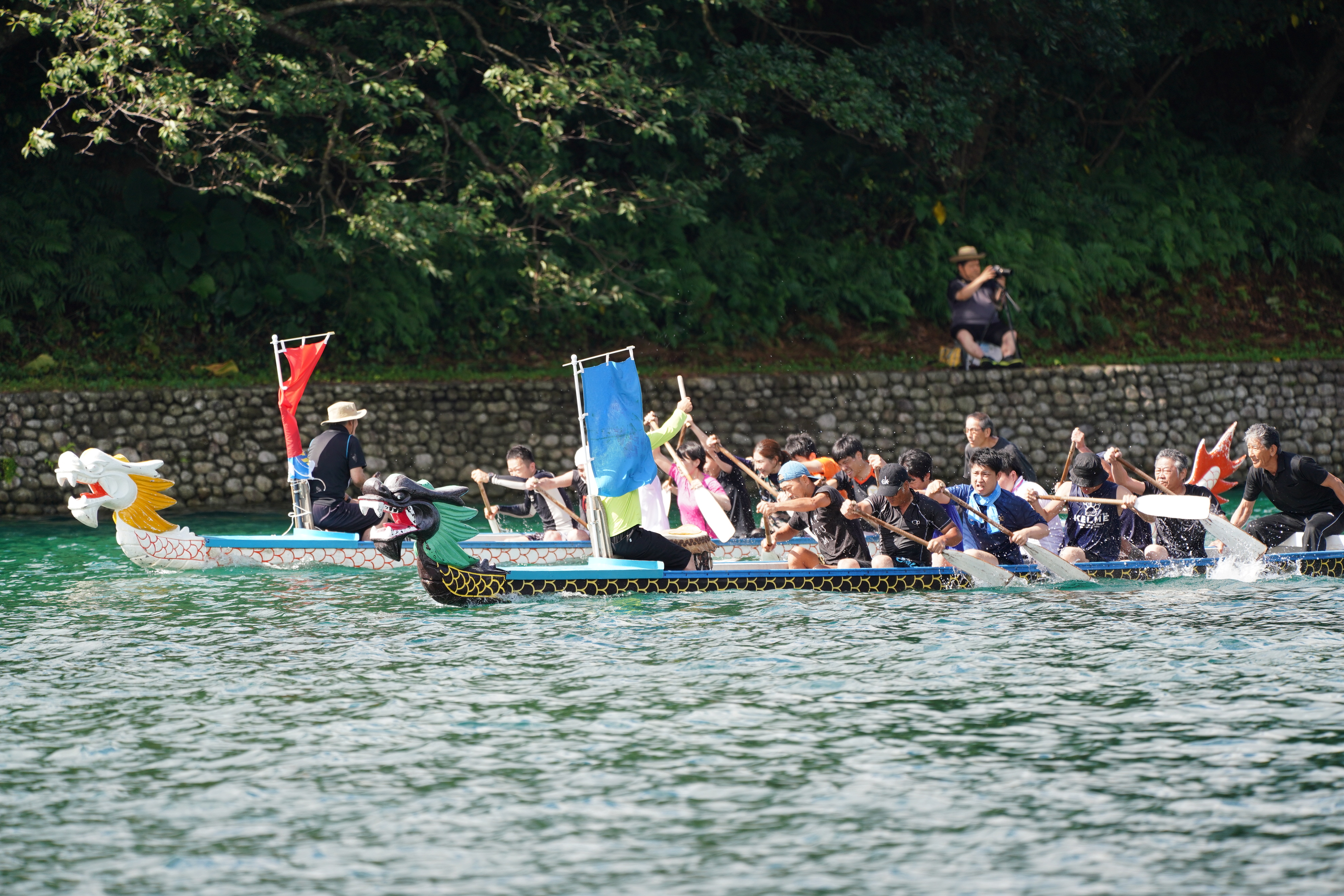 ドラゴンボート大会は、屋久島の夏の風物詩として毎年行われており、竜をあしらったボートで200m漕ぎ、速さを競います。