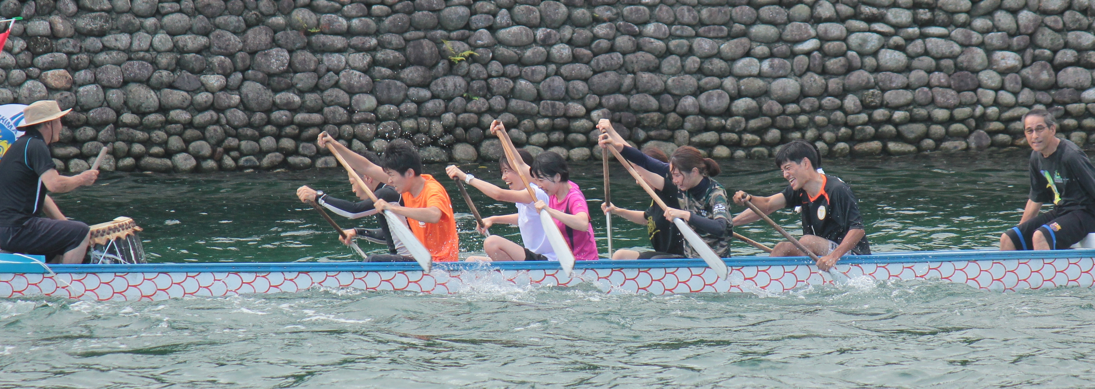 ▲後半は腕が上がらなくなりますが、太鼓の音に合わせて必死に漕ぎました。