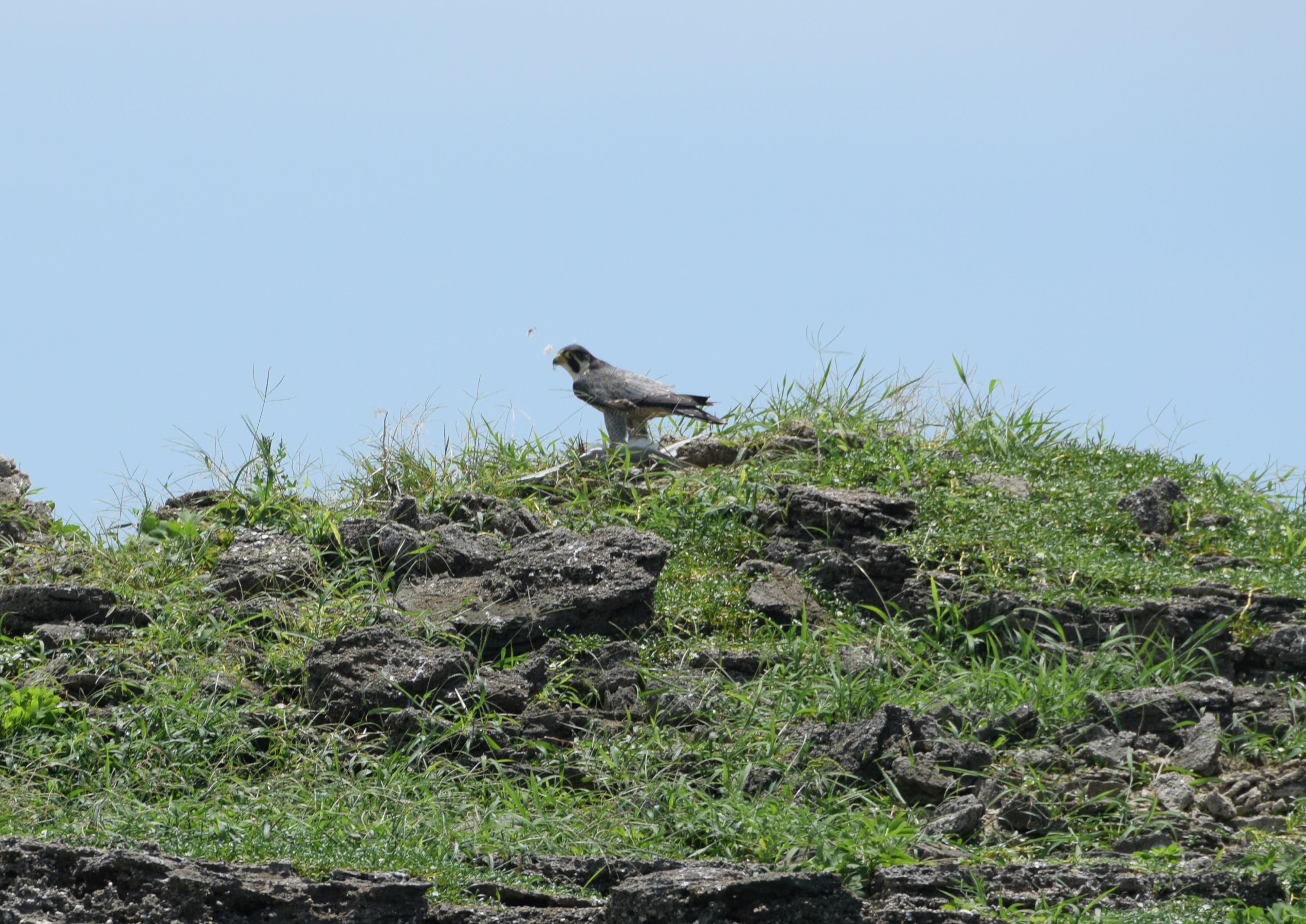 (ハヤブサは、ヤンバルクイナと同じ国内希少野生動植物種に指定されている絶滅危惧種です。)