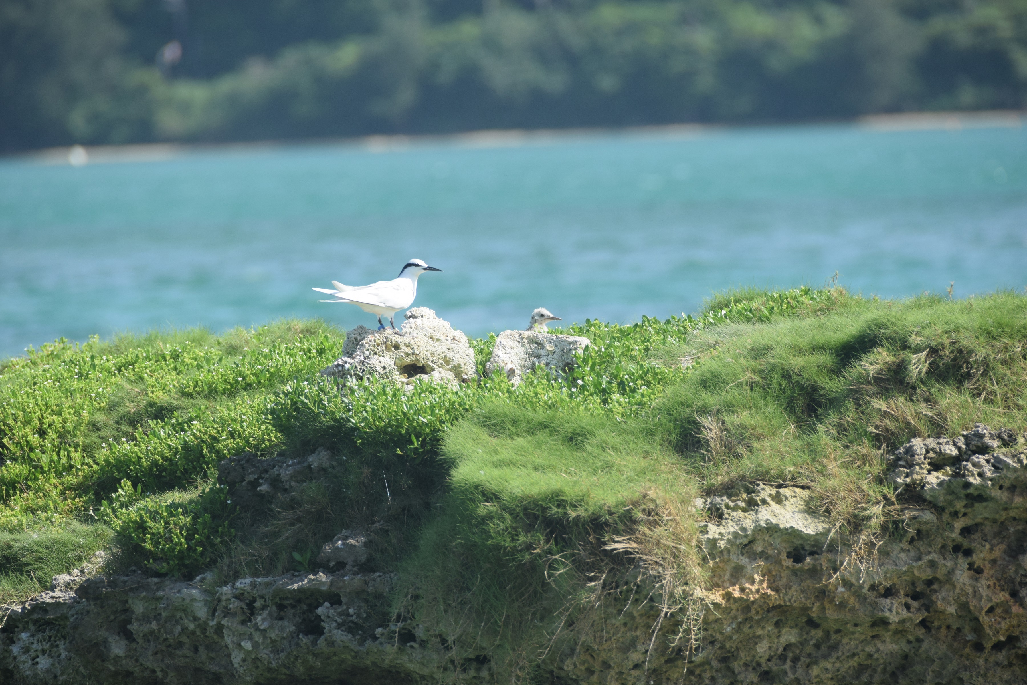 他の岩礁では、一足先に産卵に入っていたエリグロアジサシ達のヒナが船からでも分かるぐらいにすくすくと育っていました。
