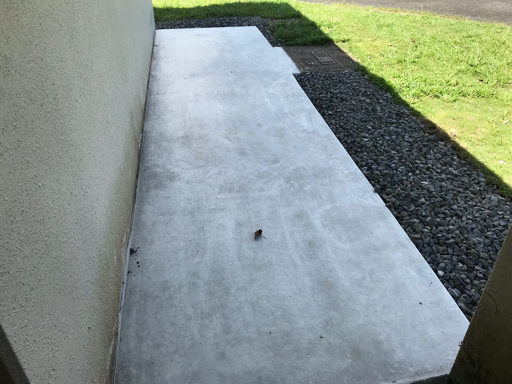 ▲野営場トイレ・シャワー棟の水溜 ▲水溜及び雑草対策のためコンクリート打設