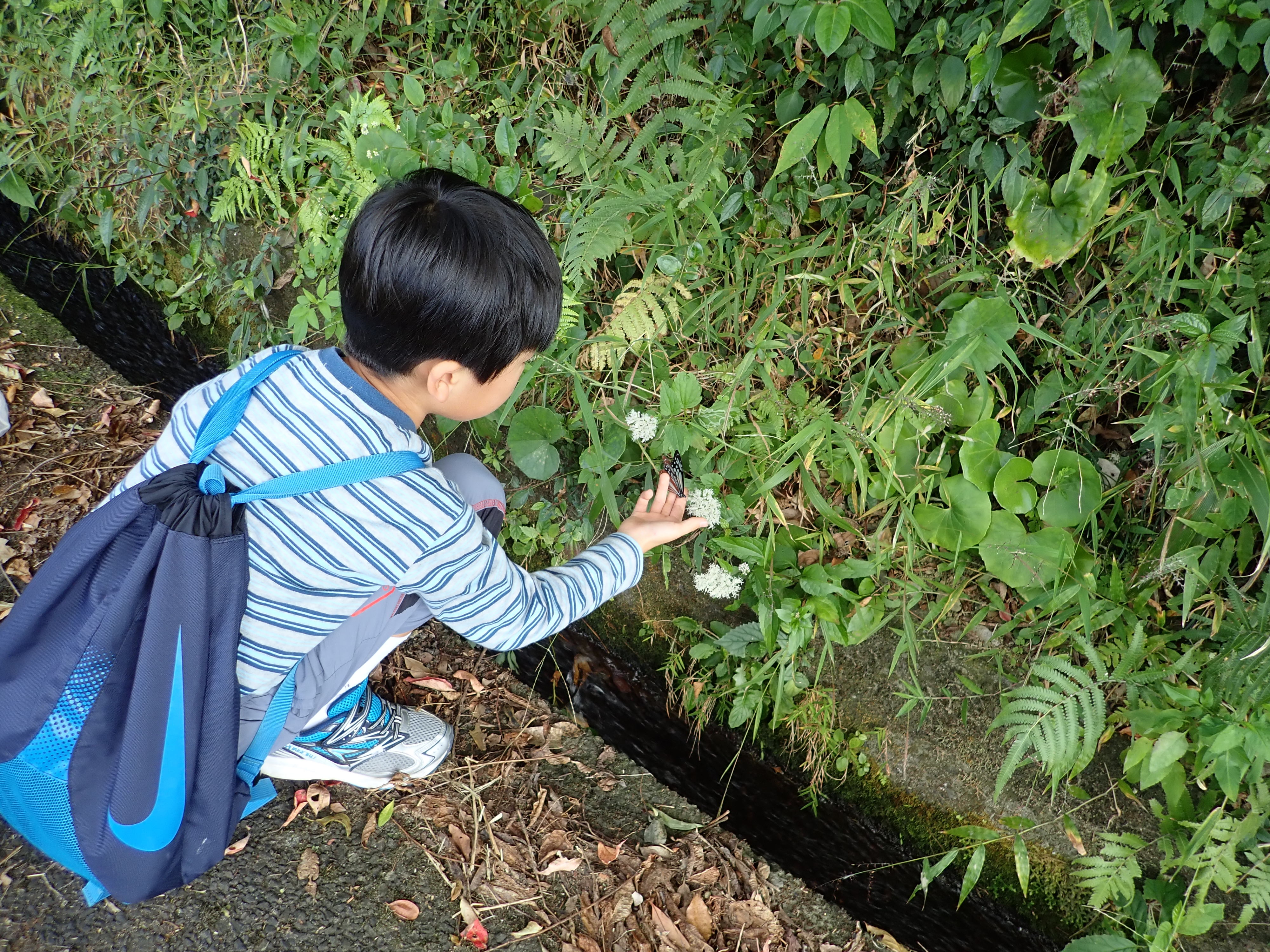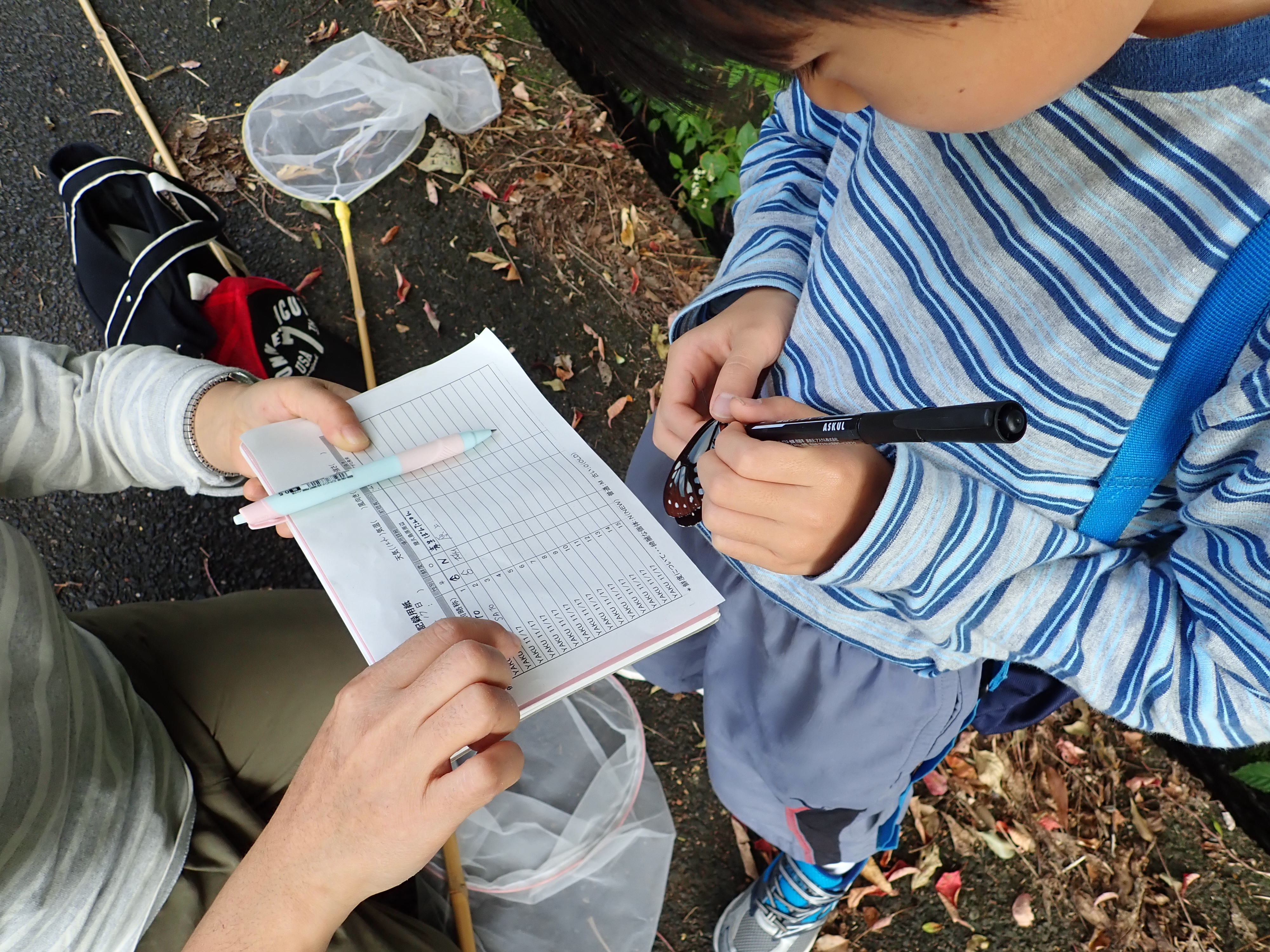 ▲マーキング練習の様子。ここで男の子がマーキングしたアサギマダラがこの後台湾に飛んでいくのです。