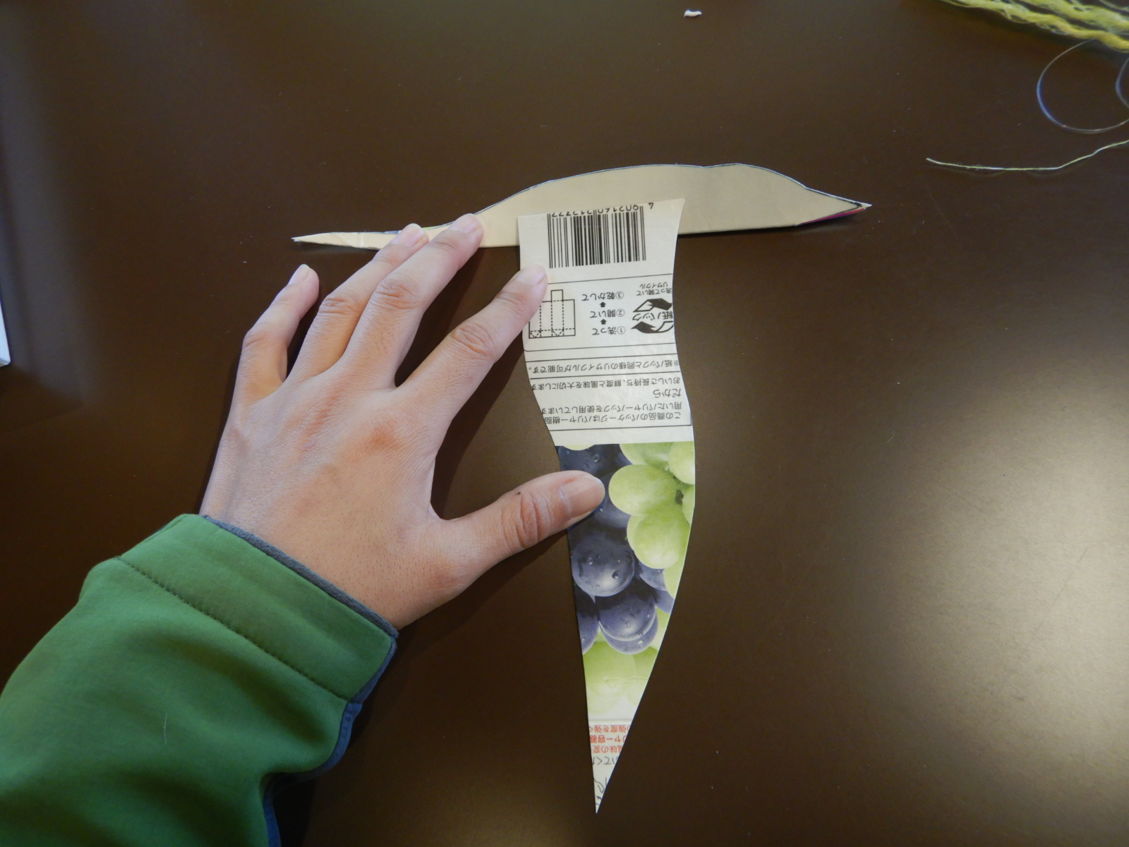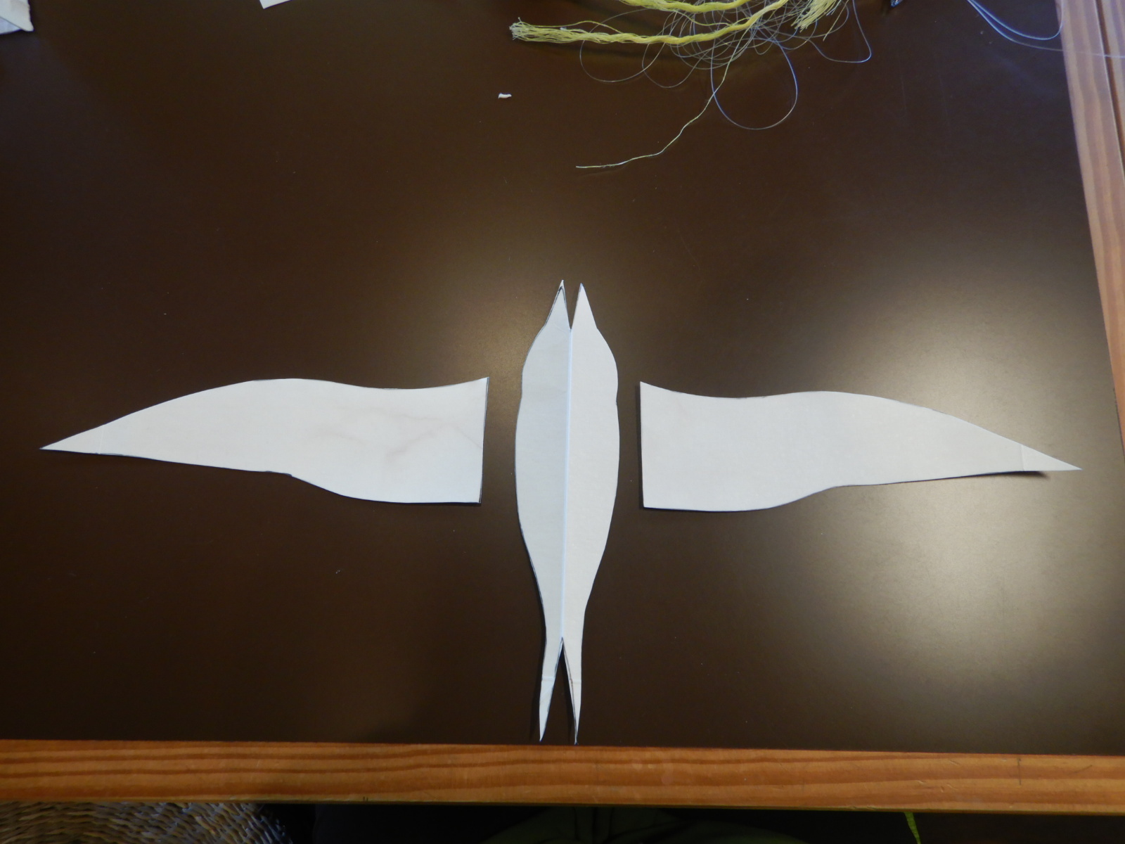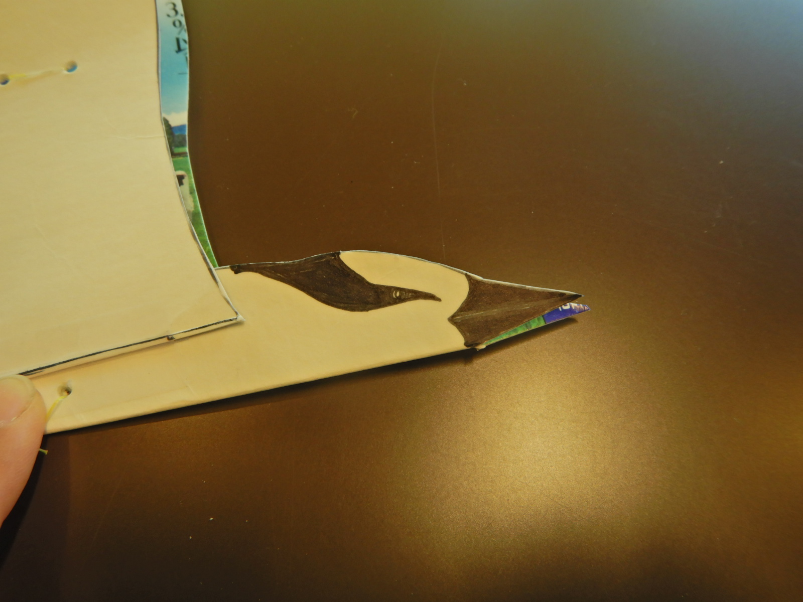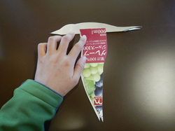 図を参考に、紙パックにアジサシの胴体と翼の形を書いて切り取っていきます。