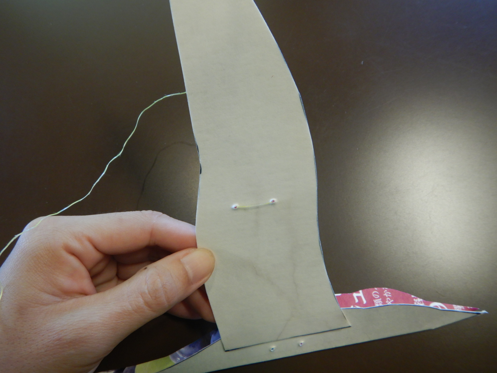 通した糸を持つとこんな感じです。