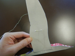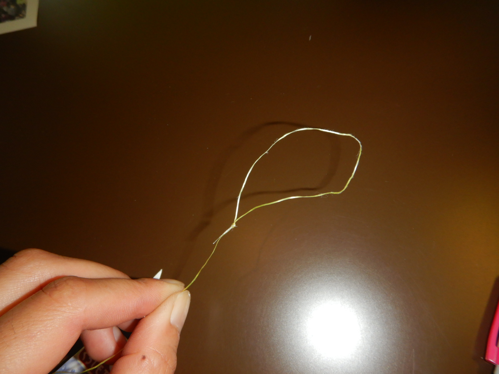 翼の糸の輪っかを準備した針金に引っかけます。