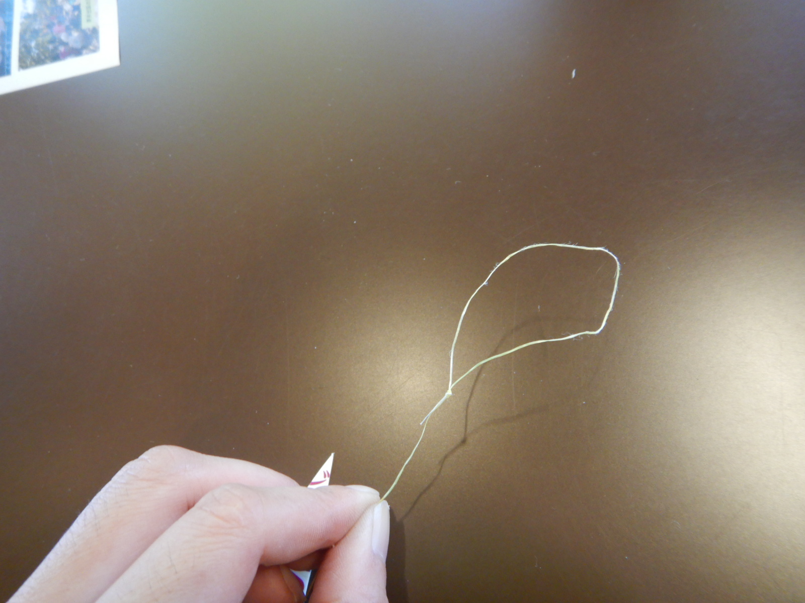 次は糸の準備です。 1mの糸を3等分に切って下さい。