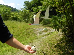 「紙パックで作るアジサシモビール」は、他の鳥のモビールの作り方を参考にアジサシ版にアレンジして、昨年の羽地ダムこいのぼり祭りのブースで紹介したものです。