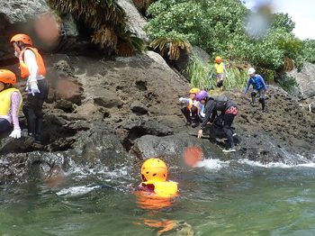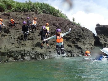 コーステアリングとは、イギリス発祥の新しいスポーツで、普段は行くことができないと思っている海岸線の岩場を、徒歩や遊泳しながら進みます。