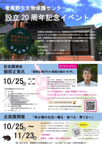 20周年記念イベントについてのお問い合わせは、奄美野生生物保護センターまで。