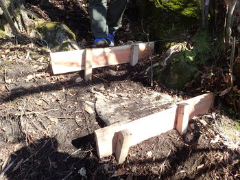 ▲生徒達も階段の杭を打ち込みます