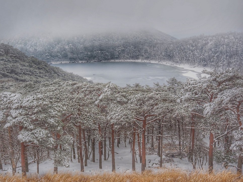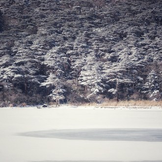 ~雪が積もって凍った白紫池を撮影~