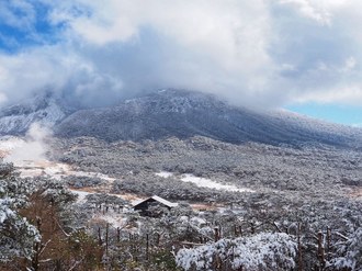 霧島錦江湾国立公園霧島地区の山々では、雪が積もりました。