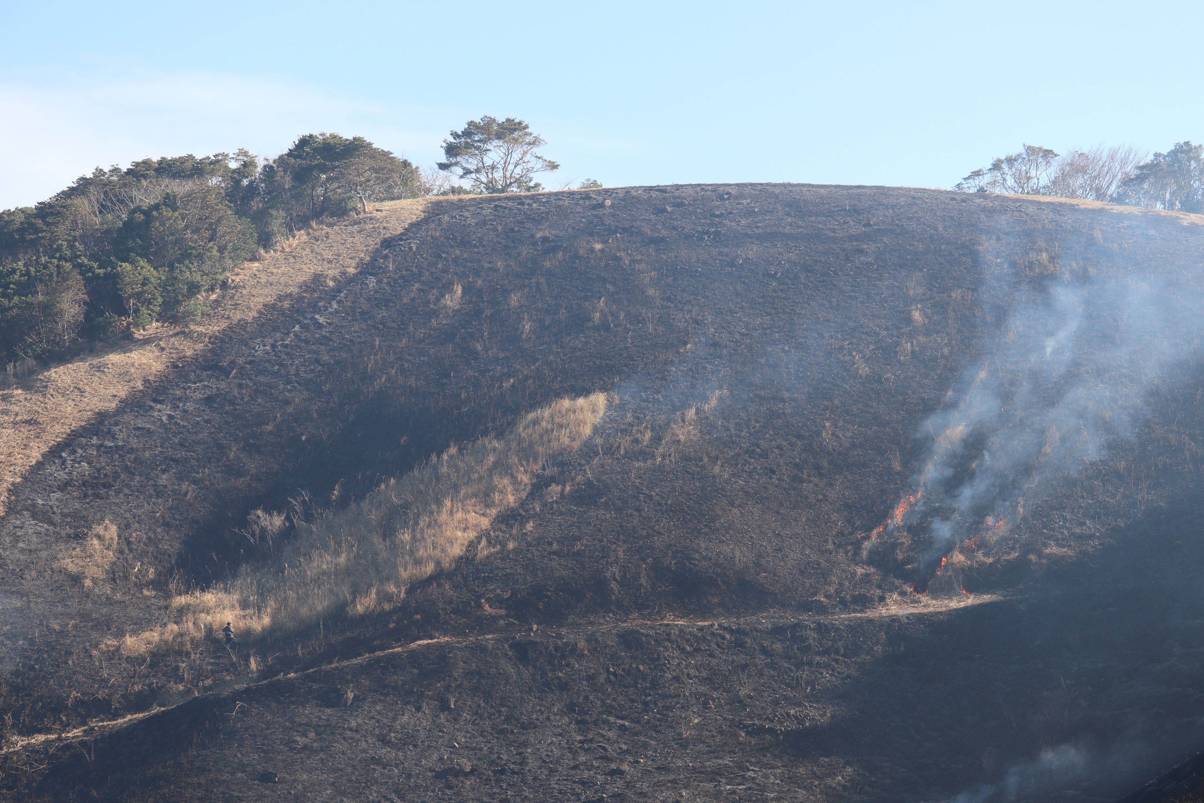 これは、今年の2月14日に平戸の上段の野の野焼き作業後の草原です。