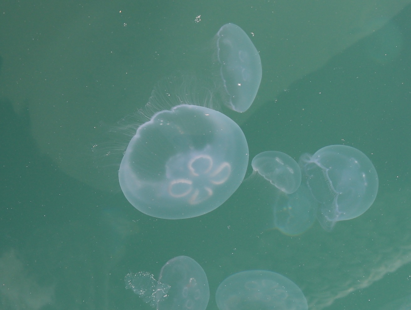 ミズクラゲと言えば、四つ葉のクローバーみたいな傘模様があり白く、たゆん・たわんとのんびり遊泳する姿がとても可愛らしく思えます。