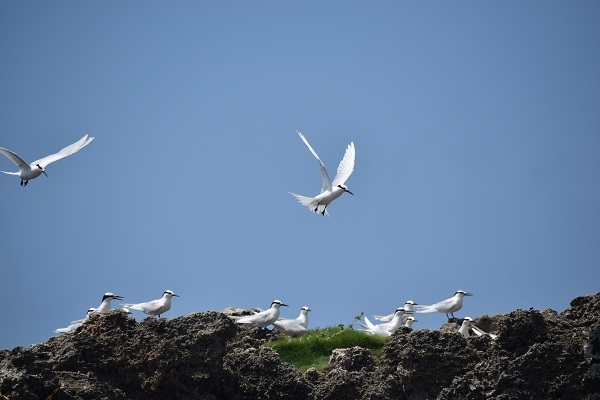 屋我地で繁殖するアジサシたちですが、台風による高波で岩礁ごと波をかぶってしまい失敗するケースもありました。今シーズンは長雨による影響はあったかもしれませんが、台風が直撃しなかったことが幸いしました。