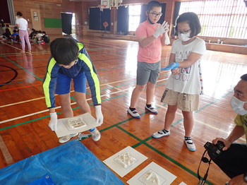 イベントの前日である3月5日(サンゴの日!)に、地元小学校の児童がサンゴの破片や、貝殻、シーグラスを使ってサンゴセンターの表札看板をリニューアルしてくれました。