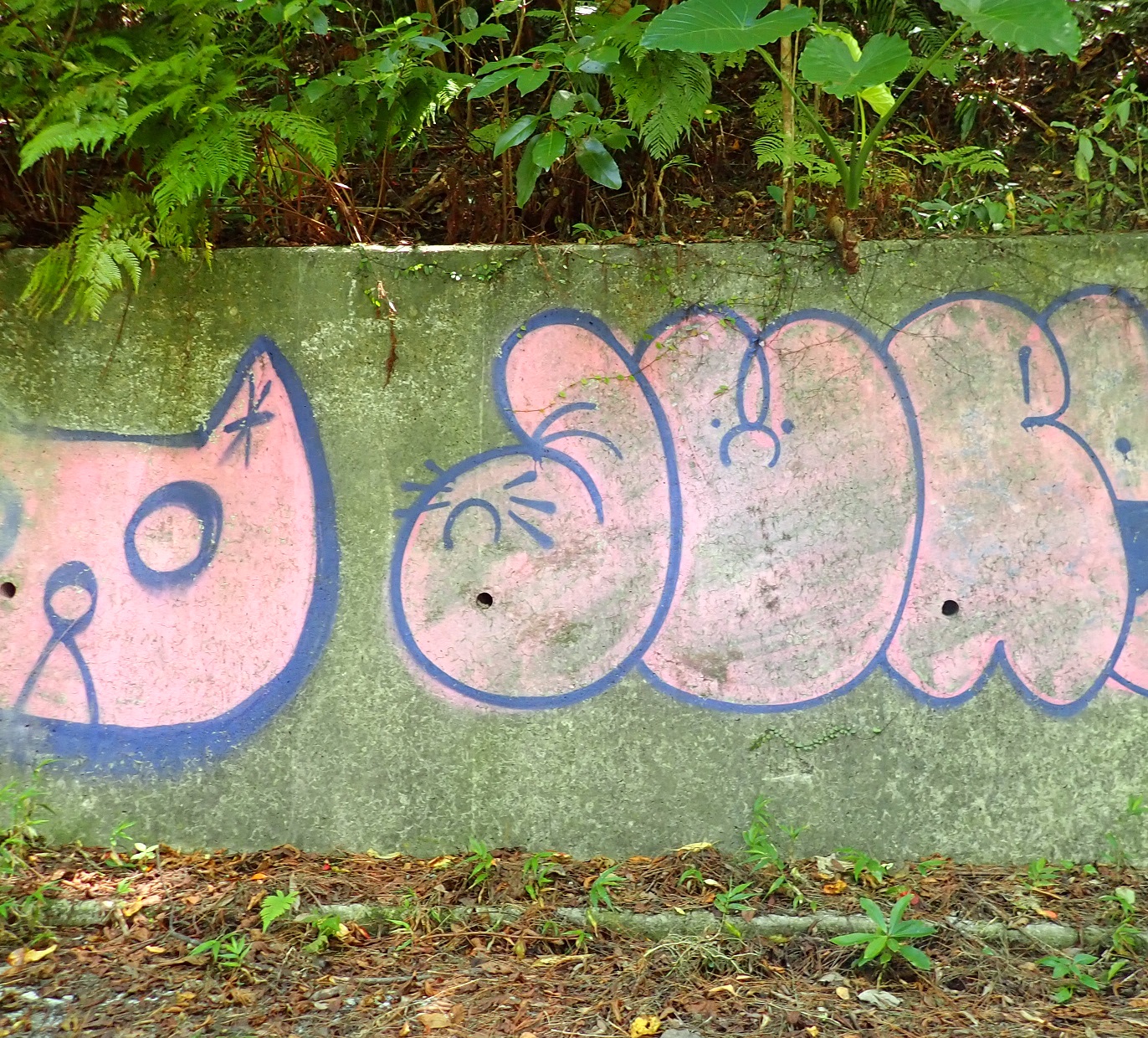 とはいっても,楽しいことばかりではありません。残念ながら,悲しい変化を目にすることもあります。ゴミの不法投棄。許可なく仕掛けられた昆虫トラップ。最近は至るところで落書きやシールを見かけることも増えました。壁に吹きつけられた人工塗料の上をヤンバルヤマナメクジがコケを食べながら進む姿を見たときは,とても胸が痛みました。