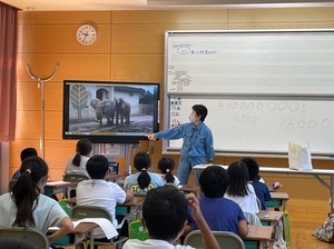 事前学習は教室で、環境省より阿蘇くじゅう国立公園の特徴や草原について紹介し、動植物園の獣医の徳重さんと飯冨さんより、H28年度の熊本地震で大きな被害にあって、水の大切さを実感したこと。阿蘇と熊本市は地下水で繋がっていること。動植物園と阿蘇の草原の関わりなどを動物の映像などを交えながら紹介いただきました。
