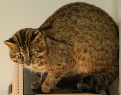 このツシマヤマネコ(Mn-102:うねくん)は令和4年2月2日に市民の方から錯誤捕獲(シカやイノシシを捕まえるために設置された罠にヤマネコがかかってしまうこと)の通報を受け、保護したヤマネコになります。